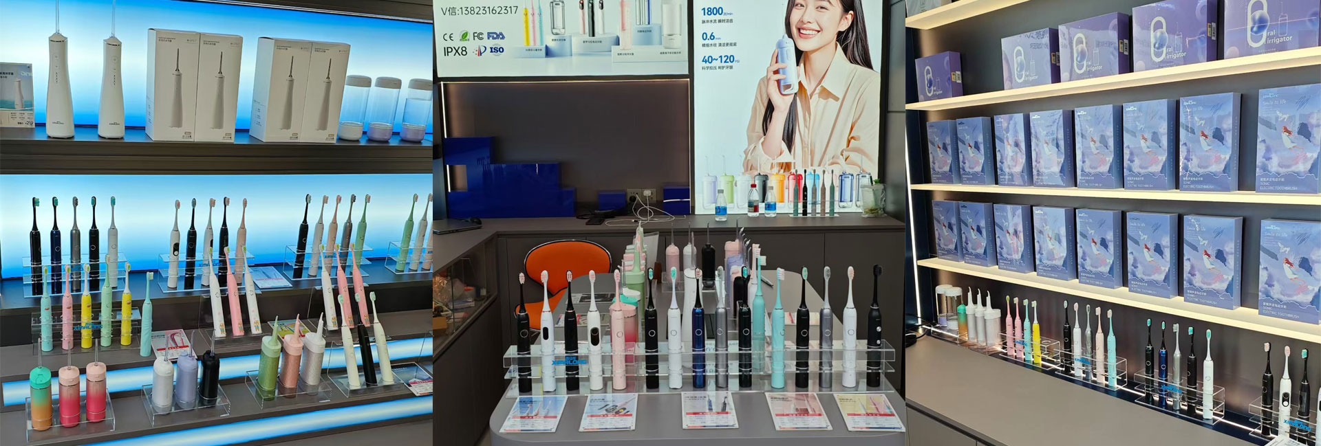Step into our modern showroom and discover the future of oral care. We are proud to showcase our latest innovations in electric toothbrushes and water flossers, designed to combine cutting-edge technology with elegant aesthetics.